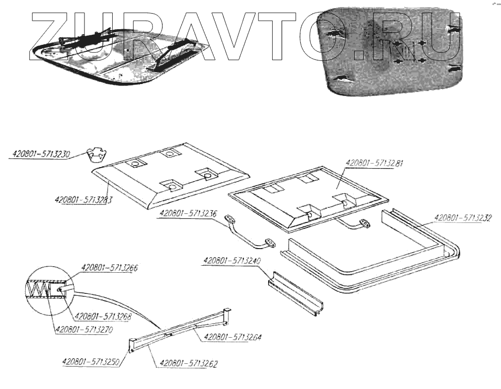 | 420801-5713264 | 420801-5713264 | Корпус механизма открывания люка | Нет в продаже |