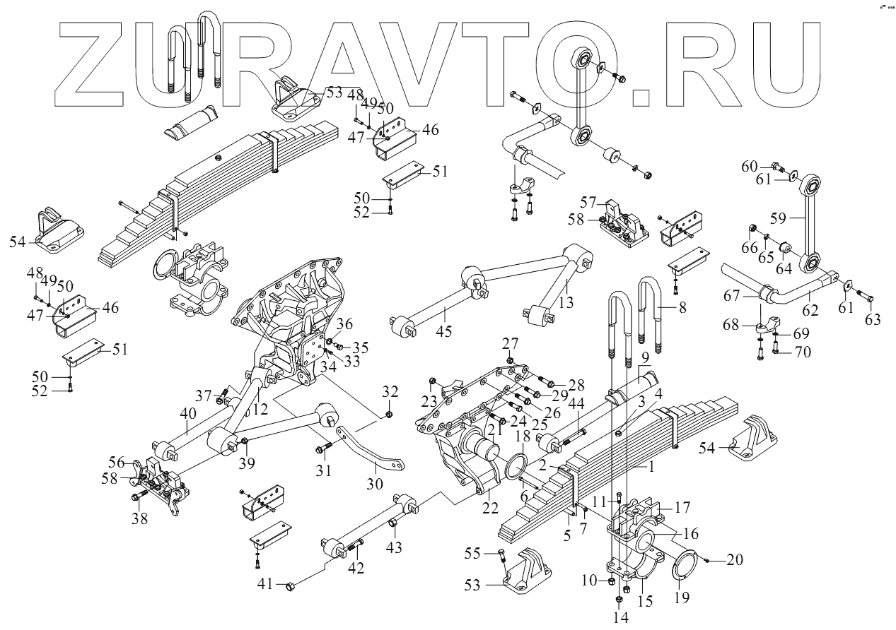 54 2912450A377 Опора задней рессоры в сборе - правая сторона среднего места, левая сторона заднего моста Нет в продаже