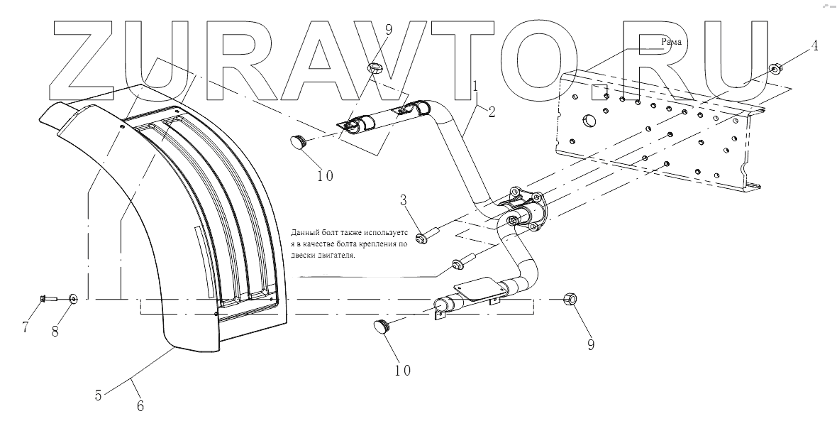 2 5103370-48V Трубчатая опора правого заднего брызговика в сборе Нет в продаже