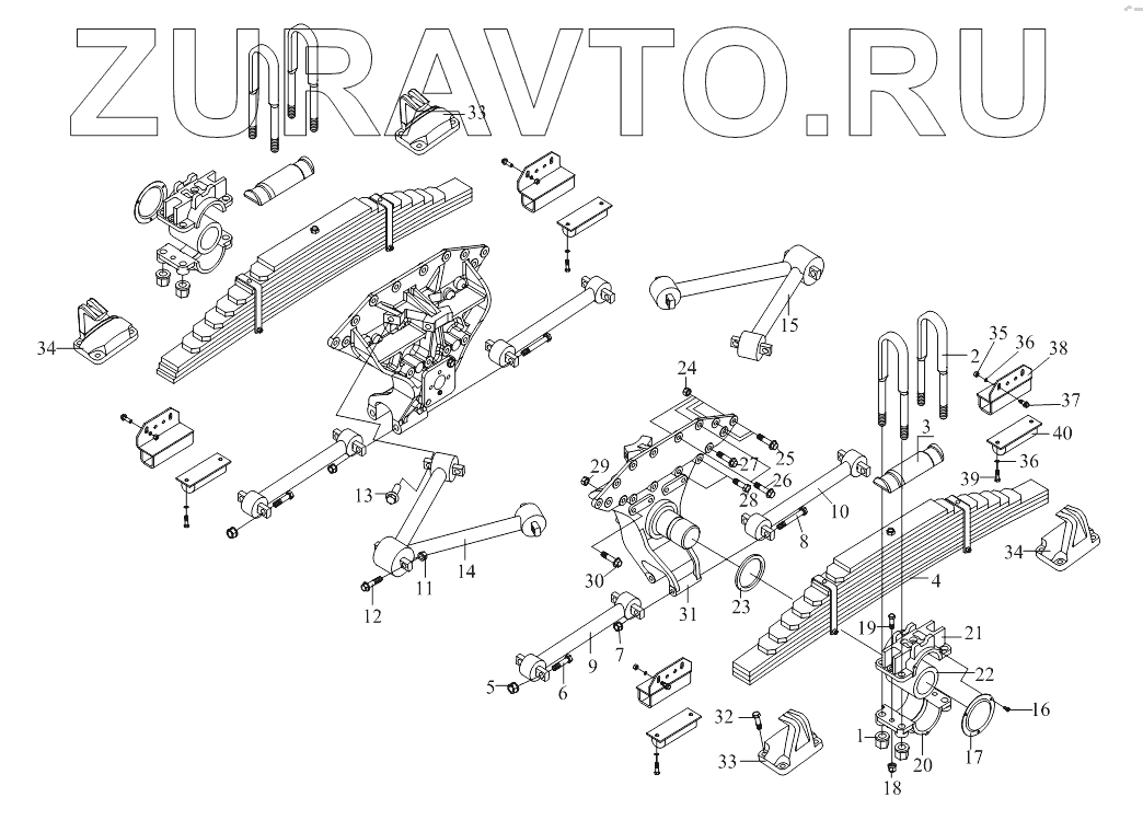 | 33 | 2912445A377 | Опора задней рессоры в сборе - левая сторона среднего моста, правая сторона левого моста | Нет в продаже |