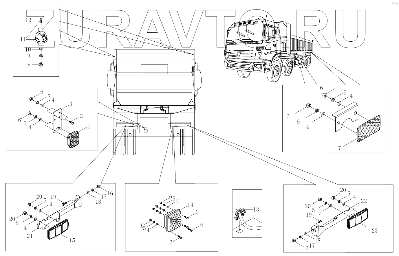 | 22 | 1325136500002 | Fixing support, RH rear combined lamp | Нет в продаже |