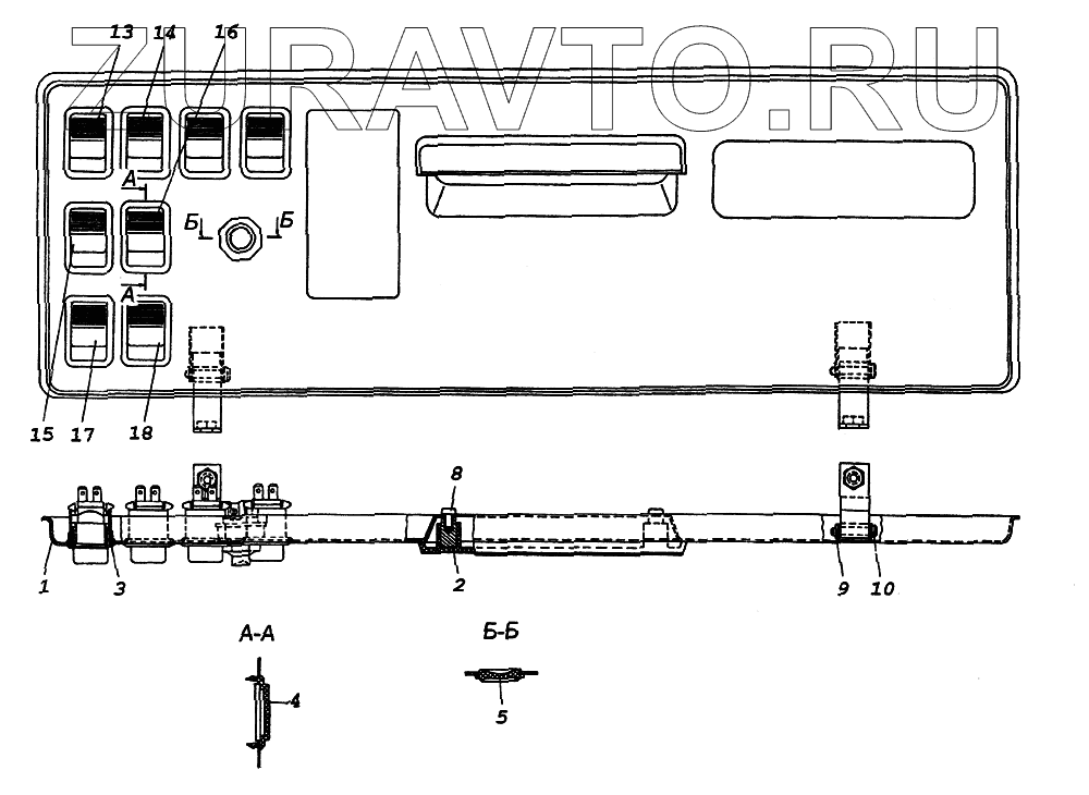 | 1 | 53215-3710426-37 | Панель выключателей с петлями и кронштейном запора | Нет в продаже |
