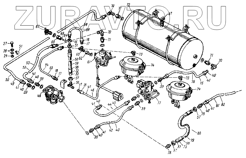 | 54 | 8350-3506296 | Трубка к передней тормозной камере правая в сборе | Нет в продаже |