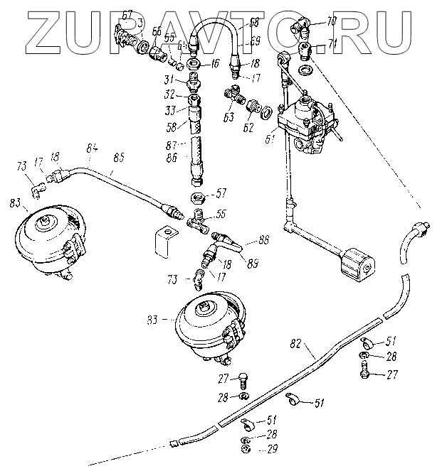 | 85 | 8350-3506326 | Трубка к задней тормозной камере правая в сборе | Нет в продаже |