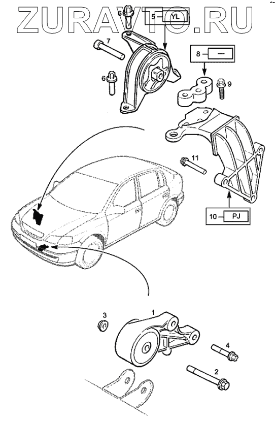 | 10 | 6 84 003 | Опора, правое крепление двигателя | Нет в продаже |