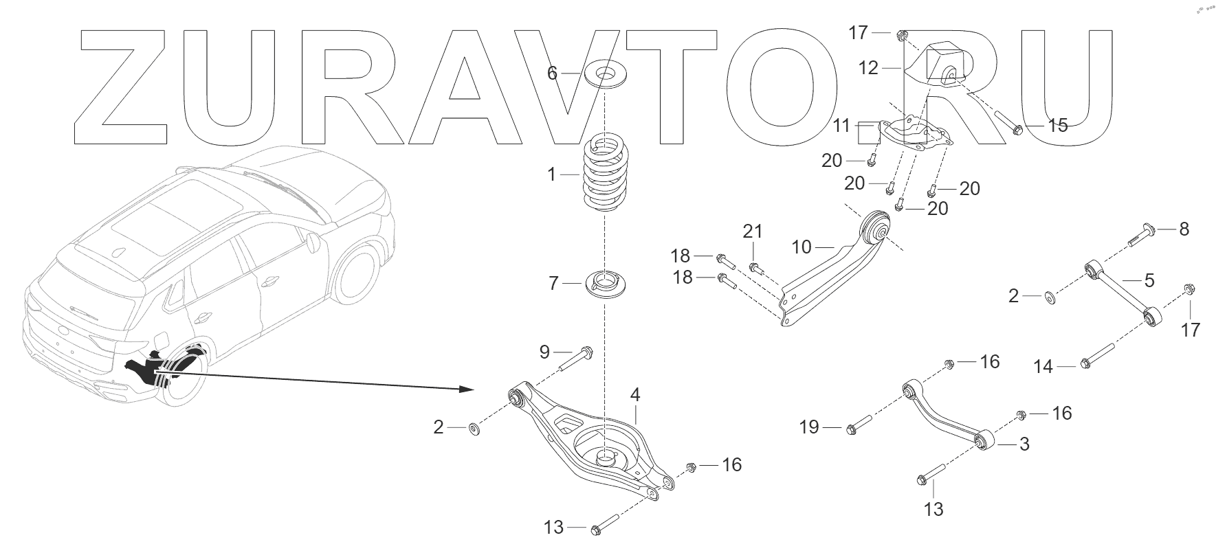 | 10 | 3620232ARX0000 | Задний правый продольный рычаг в сборе | Нет в продаже |