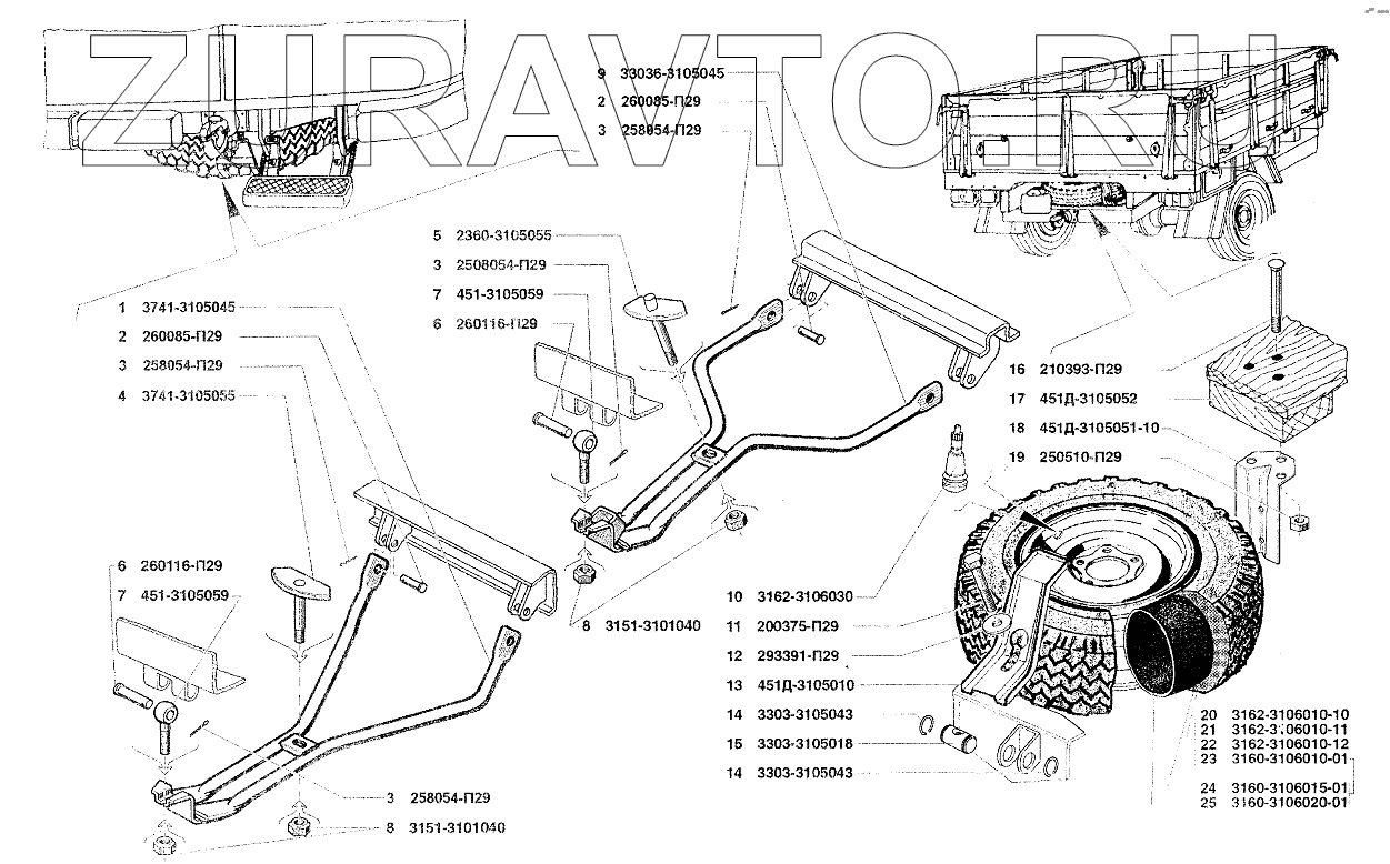| 13 | 451Д-3105010 | Держатель запасного колеса | Нет в продаже |