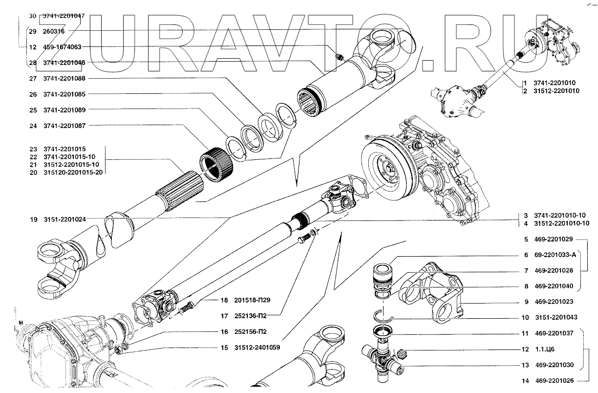 | 22 | 3741-2201015-10 | Вал карданный заднего моста | Нет в продаже |
