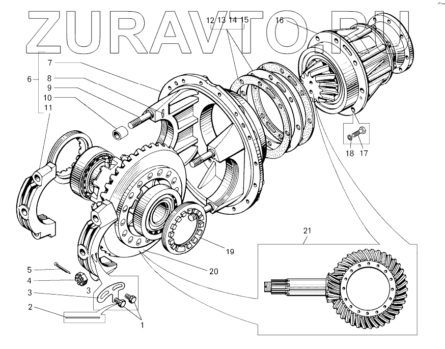 | 21 | 7822-2402020 | Шестерня ведущая и ведомая главной передачи комплект для запчастей | Нет в продаже |