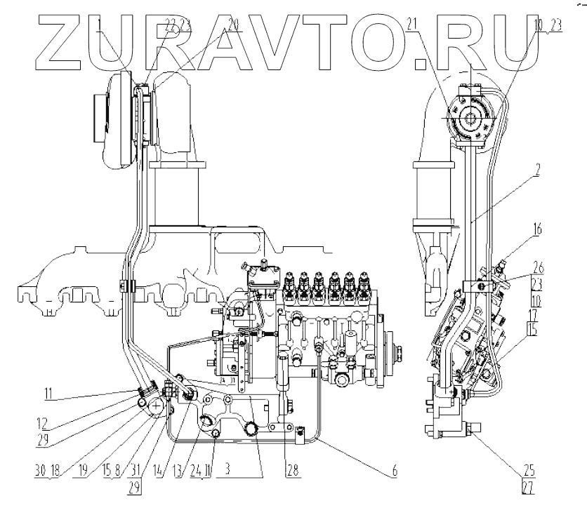 | 6 | 19BB622+A | Fuel inlet tube, fuel injection pump | Нет в продаже |